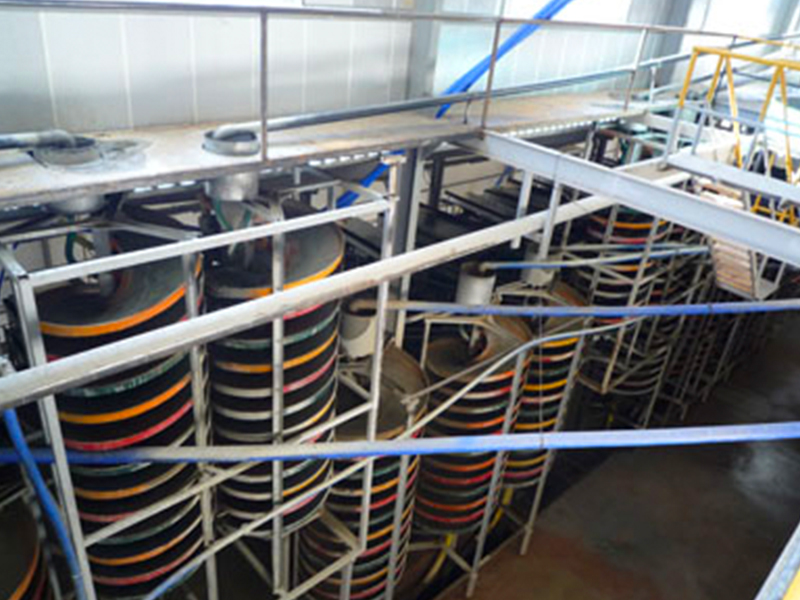 公司有玻璃鋼化工技術(shù)及制造工藝的優(yōu)勢,早在1988年就研制開發(fā)了國內(nèi)大直徑及新斷面特性的DL—2000型兩米直徑玻璃鋼螺旋溜槽。該設(shè)備一臺處理能力相當(dāng)于40臺搖床,選別指標(biāo)優(yōu)良。1989年通過部級技術(shù)鑒定并獲獎,填補(bǔ)國內(nèi)選礦設(shè)備一項(xiàng)空白。20多年來,公司先后開發(fā)了一系列玻璃鋼選礦新設(shè)備,使設(shè)備性能、結(jié)構(gòu)參數(shù)更臻完善。就玻璃鋼螺旋溜槽φ400—φ2000各類系列產(chǎn)品和各種床條結(jié)構(gòu)的玻璃鋼搖床而言,公司擁有國內(nèi)完備的直徑與型號系列;完善的結(jié)構(gòu)參數(shù);過硬的制作質(zhì)量;新穎的改進(jìn)型式;可靠的設(shè)備選型方法。