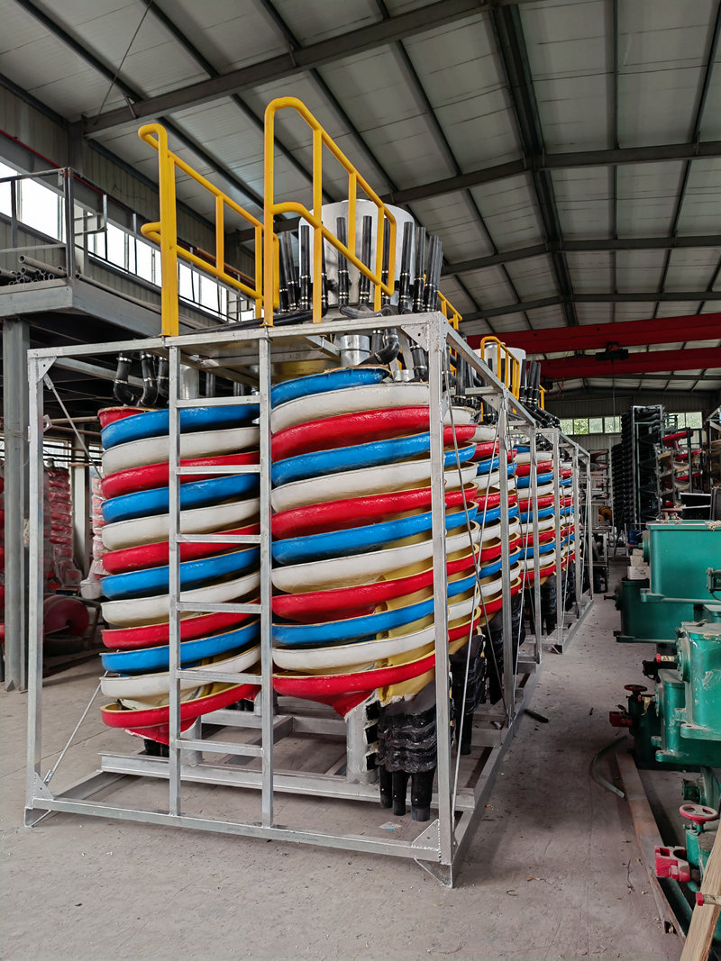 公司有玻璃鋼化工技術及制造工藝的優(yōu)勢,早在1988年就研制開發(fā)了國內大直徑及新斷面特性的DL—2000型兩米直徑玻璃鋼螺旋溜槽。該設備一臺處理能力相當于40臺搖床,選別指標優(yōu)良。1989年通過部級技術鑒定并獲獎,填補國內選礦設備一項空白。20多年來,公司先后開發(fā)了一系列玻璃鋼選礦新設備,使設備性能、結構參數(shù)更臻完善。就玻璃鋼螺旋溜槽φ400—φ2000各類系列產品和各種床條結構的玻璃鋼搖床而言,公司擁有國內完備的直徑與型號系列;完善的結構參數(shù);過硬的制作質量;新穎的改進型式;可靠的設備選型方法。